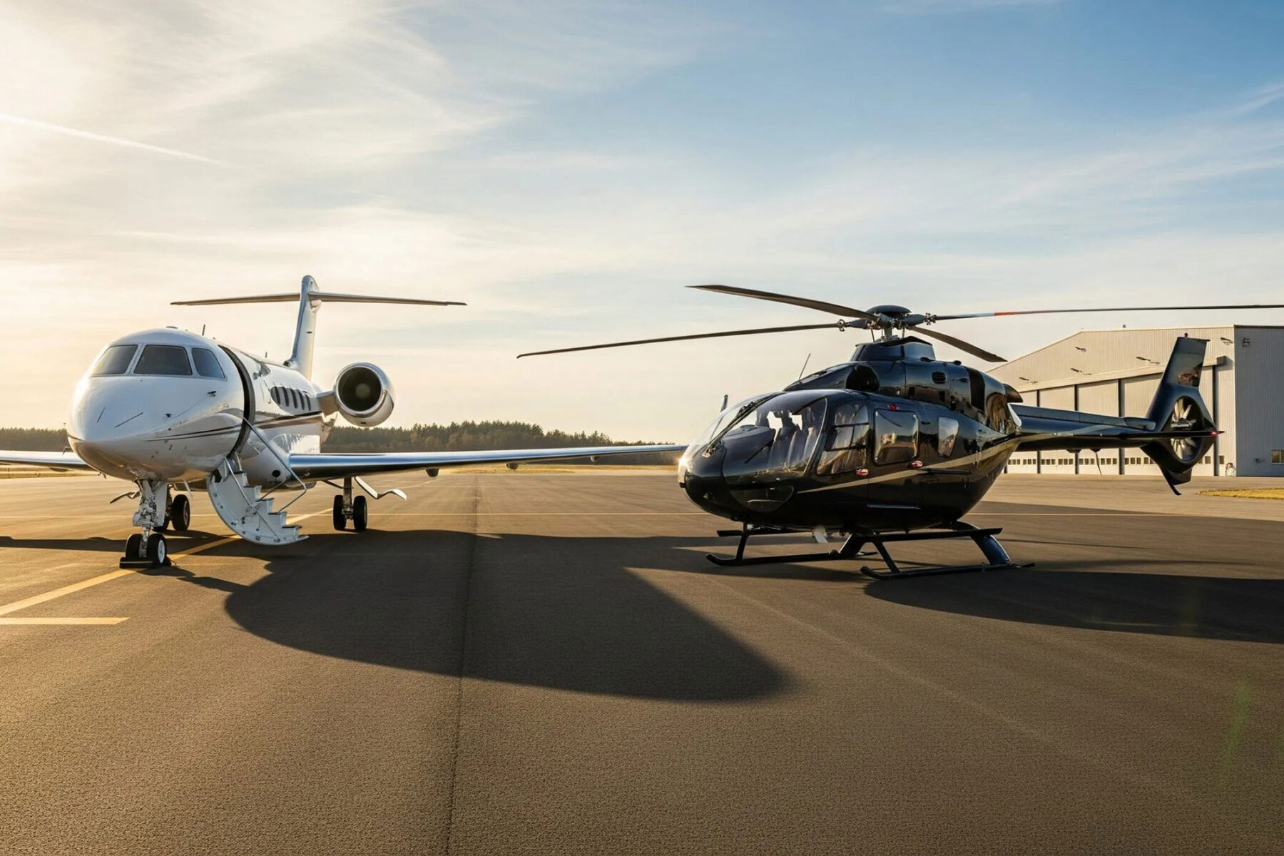 Het gevoel van vliegen in een privé jet ten opzichte van vliegen in een helikopter